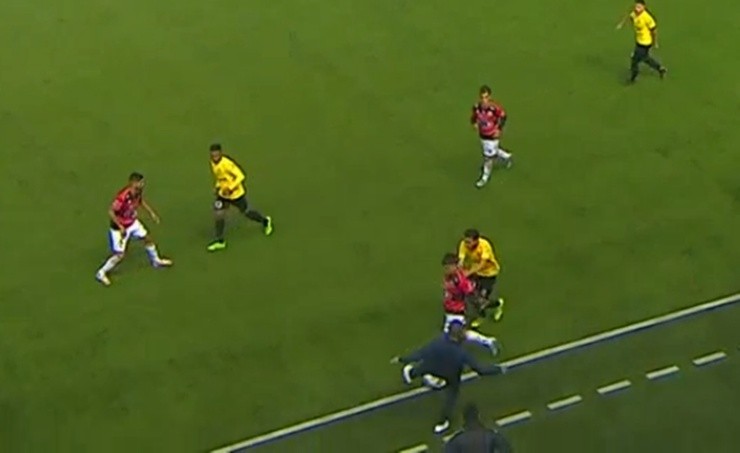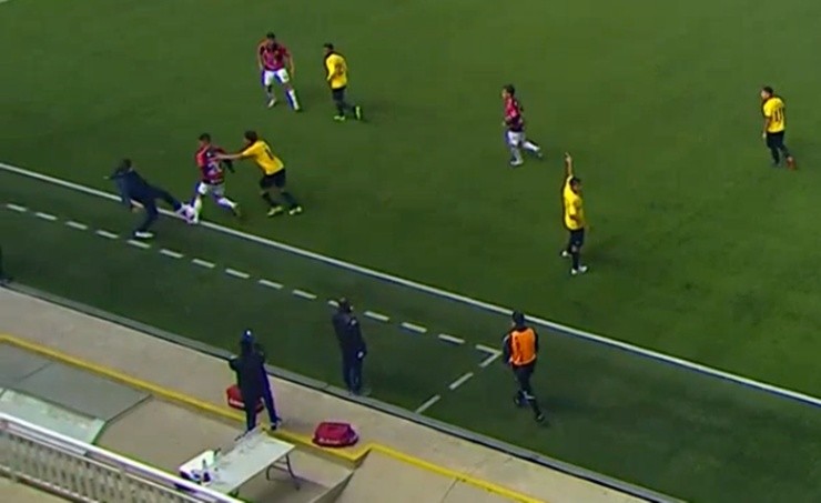 José María Martínez quiso hacer justicia con sus propias manos y trató de quitarle el balón a Marcos Fernández. Foto: Captura TNT Sports