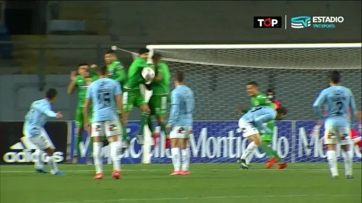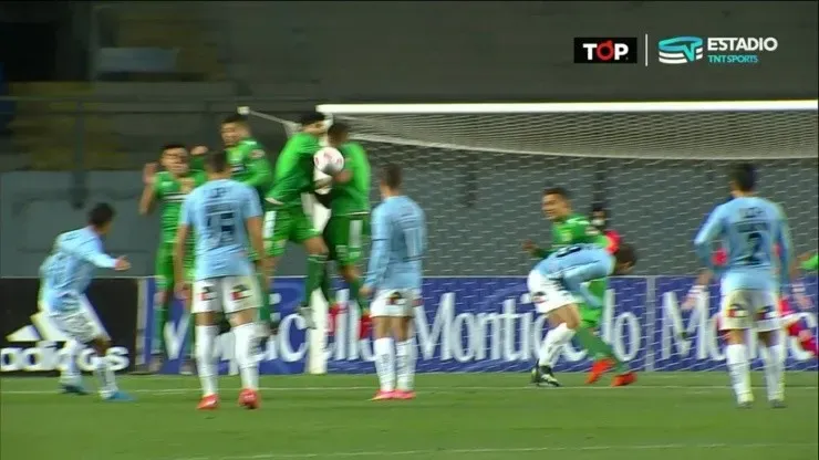 La secuencia muestra el remate de Ramón Fernández que rechaza con el brazo Iván Ochoa. Imágenes: Captura TNT Sports