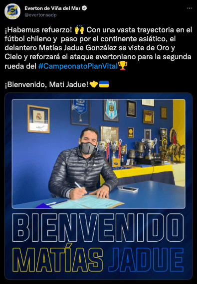 La más reciente llega desde Viña del Mar, luego que Everton confirmara la llegada de Matías Jadue González. El delantero chileno y con nacionalidad palestina firmó con los ruleteros para sellar su regreso a la Primera División de nuestro país.