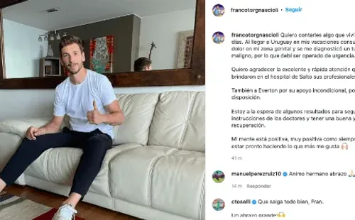 Torgnascioli también explicó que por ahora no sabe cuándo podrá integrarse a la pretemporada de Everton. “Estoy a la espera de algunos resultados para seguir las instrucciones de los doctores y tener una buena y pronta recuperación“.
