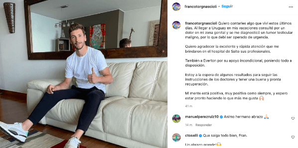 A través de sus redes sociales,Franco Torgnascioli sacó la voz tras conocerse su intervención. El arquero reveló que todo se debió a un tumor que se le detectó, por suerte, a tiempo y que lo obligó a pasar por el quirófano.
