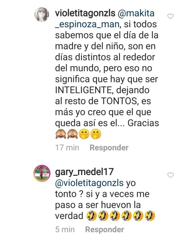 La reacción no cayó bien en varios seguidores. “Son días distintos alrededor del mundo, pero eso no significa que hay que ser inteligente, dejando al resto de tontos. Es más, yo creo que es él el que queda así”, replicó Violetita González.