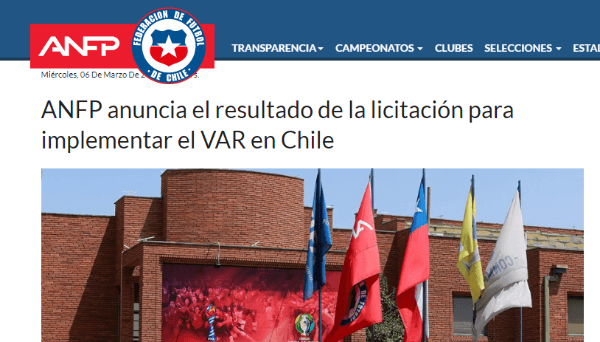 “El proceso del VAR comenzó hace un año y a partir de octubre pasado se establecieron las bases de la licitación. Se invitó a participar a14 empresas que operan como proveedores oficiales de la FIFAen una operación que se llevó a cabo con estrictas normas de transparencia y bajo la atenta supervisión de la Contraloría de la ANFP. Se recibieroncuatro postulacionescon sus anexos técnicos y económicos y un equipo multidisciplinario realizó una exhaustiva evaluación. Tras un profundo análisis, el directorio de la ANFP optó por adjudicar la licitación a la empresa Mediapro”, consignó la ANFP a través de un comunicado.