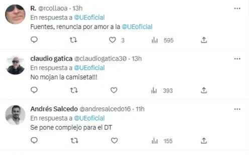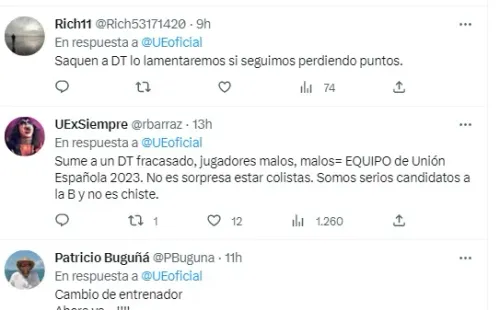 Los malos resultados más el carente juego de los hispanos ya está desembocando en las primeras críticas por parte de los hinchas de Unión Española, quienes en redes sociales ya piden la cabeza de Ronald Fuentes a pesar de llevar solo cinco partidos en su segundo ciclo en Santa Laura.