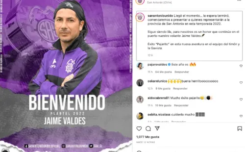 “Llegó el momento… la espera terminó, comenzaremos a presentar a quienes representarán a la provincia de San Antonio en esta temporada 2022. Sigue siendo lila, para nosotros es un honor que continúe en el puerto nuestro volante Jaime Valdes. Éxito Pajaritoen esta nueva aventura en el equipo del timón y la Gaviota”, celebraron en el SAU.