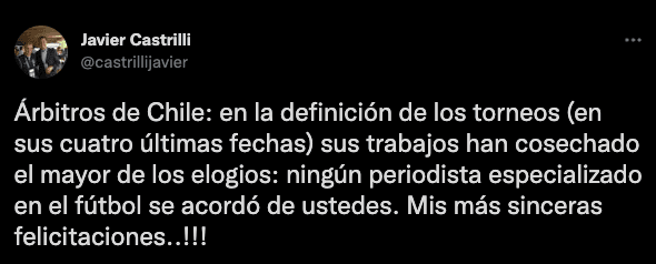 “Árbitros de Chile: En la definición de los torneos (en sus cuatro últimas fechas), sus trabajos han cosechado el mayor de los elogios“, señaló el Juez de Hierro. Esto, pese a que este año el referato local estuvo lejos de ser el mejor.