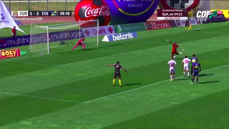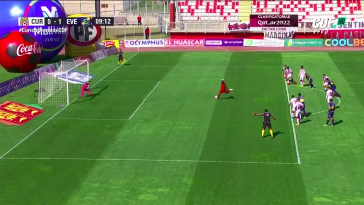 Así fue el gol para el 1-0 parcial de Everton ante Curicó Unido por la fecha 13 del Campeonato Nacional, convertido por Johnny Herrera de penal ante Paulo Garcés:
