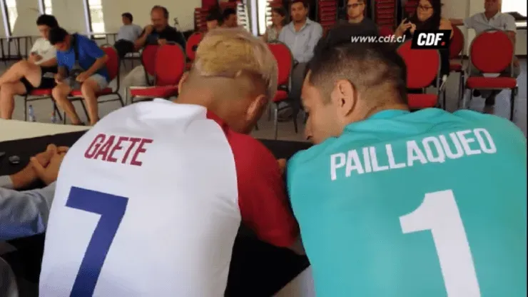 Mientras tanto, Gaeteconversaba en voz baja con los otros dos refuerzos del club, Rodrigo Paillaqueoy LucaPontigo. Pero no quiso contestar preguntas. A ratos sonreía y a ratos se le veía serio en las imágenes difundidas por el CDF.