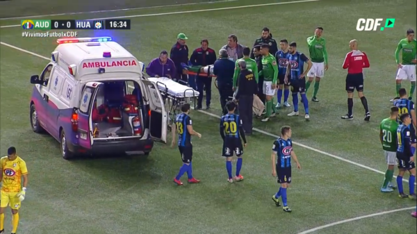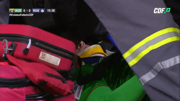 Apenas con sus sentidos en regla, debió ingresar la ambulancia y Fernández abandonó el terreno de juego con cuello ortopédico e inmovilizado en camilla con rumbo a un centro asistencial.