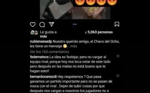 “Un poco de respeto, este no es ni será nunca el pensamiento de los jugadores que representan hoy al equipo. Se ganó y obvio estamos felices, pero hay que ser humildes en el triunfo y en la derrota, hoy no somos los mejores y cuando perdemos no somos los peores.Respeta para ser respetado. Felicidades equipo, tremendo partidos se mandaron”, publicó el Chiki.