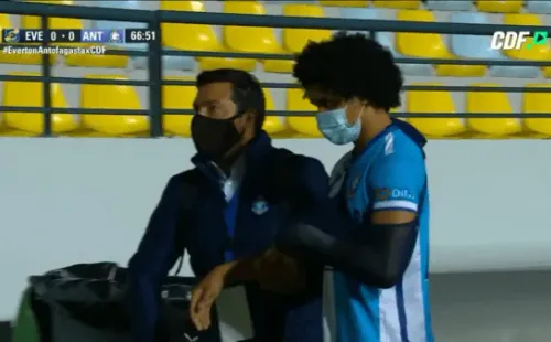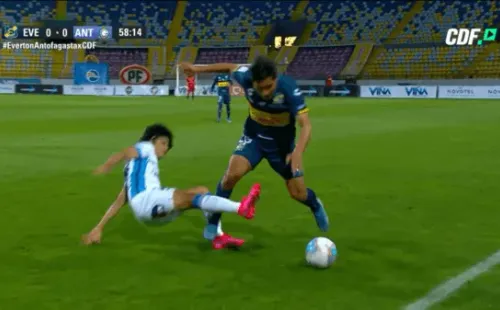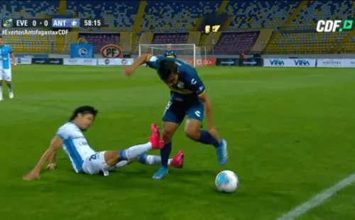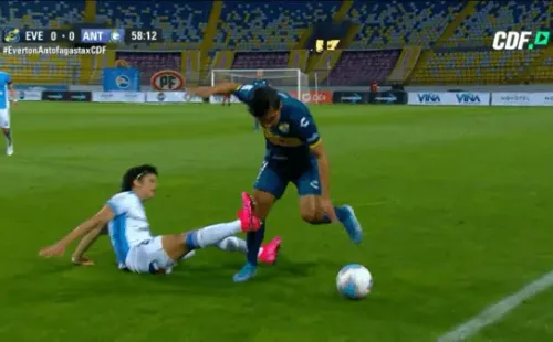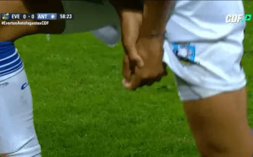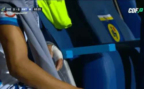 Minutos después Eduard Bello debió abandonar el recinto con un cabestrillo para ser trasladado a un centro asistencial. Sausalito tiene algo contra el mediocampista venezolano de Antofagasta.