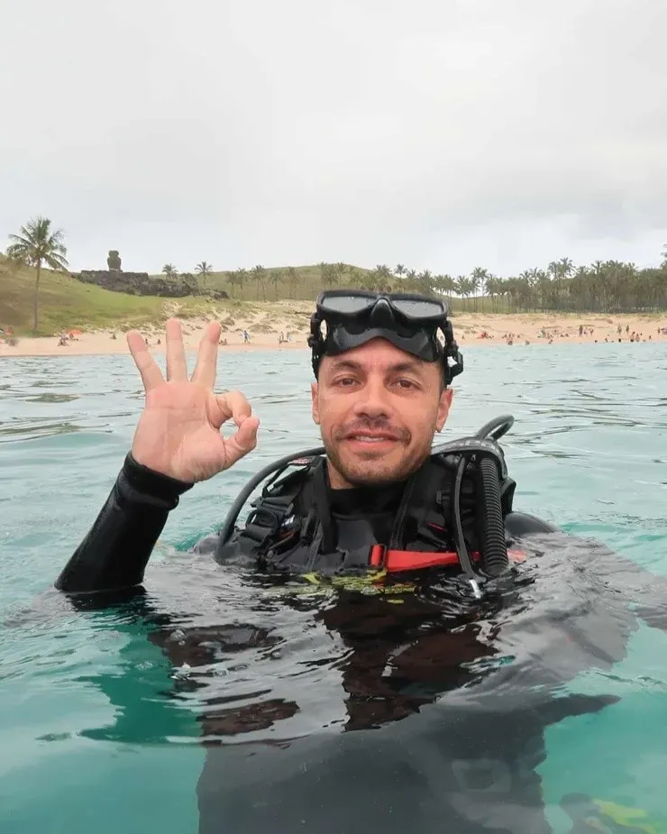 Así lo demostró en sus redes sociales, donde haciendo honor a su apodo de Carepato, el bicampeón de América se lució buceando por Anakena, en Rapa Nui.