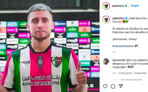 “¡Ariel Martínez se viste de tricolor! El volante de 28 años se suma a Palestino para los desafíos del 2022. ¡Bienvenido, Chuky!”, lanzó a través de sus redes sociales el cuadro de colonia.