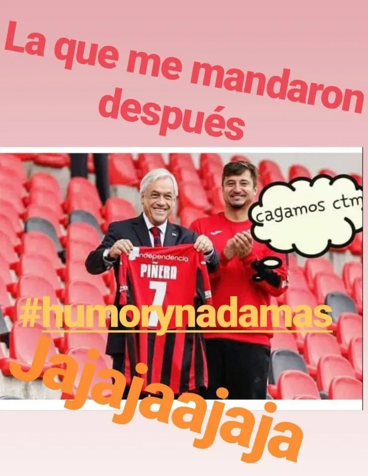 En las redes sociales, Sebastián Piñera, tiene la fama de mufar a cada equipo al que visita o al que posa con una camiseta. Ante esto, Nicolás Peric se tomó para la risa la talla y publicó estas dos fotos con respeto y humor nada más.