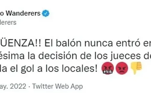Tras esto vinieron los reclamos de la gente de Santiago Wanderers, en el mismo estadio, además por redes sociales, donde la cuenta oficial de los porteños se fue con todo por el “gol fantasma”.