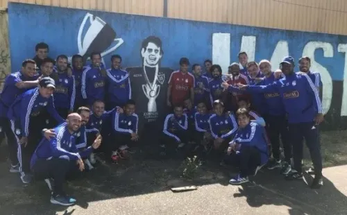 El defensor es considerado ídolo en Huachipatopor ser un pilar fundamental en uno de los dos campeonatos de la institución acerera. Omar Merlo tuvo el tiempo para salir del estadio con todo el plantel y fotografiarsecon un mural donde esta su cara levantando la copa.