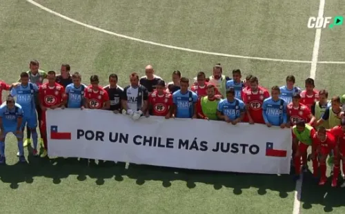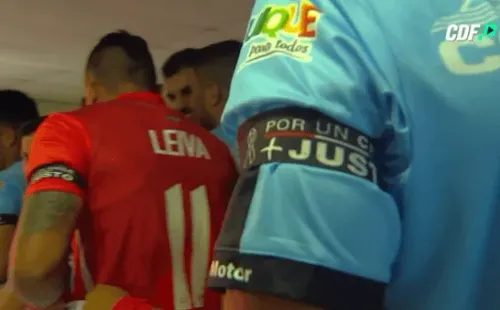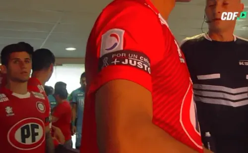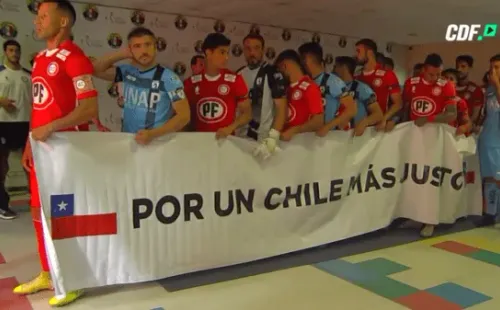 Asimismo, los jugadores de ambos equipos salieron al campo con un lienzo que contenía la leyenda “por un Chile más justo”, que llevaron intercalados entre rojos y celestes. El mismo mensaje porta cada futbolista en el brazo, escrito en una cinta negra.