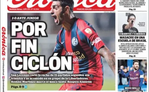 Crónica no le dio la parte superior de su contratapa a River, solo por enfocarse en San Lorenzo que sí derrotó al Junior de Matías Fernández.