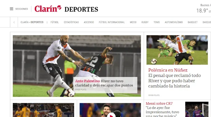 A más de uno lo tomó por sorpresa: River Plate es un equipo con una tasación de mercado doce veces superior a la de Palestino, por lo que cualquier resultado que no fuera ganar, era una sorpresa. Eso pasó anoche en la Copa Libertadores y así lo reflejaron los diferentes medios especializados de aquel país.