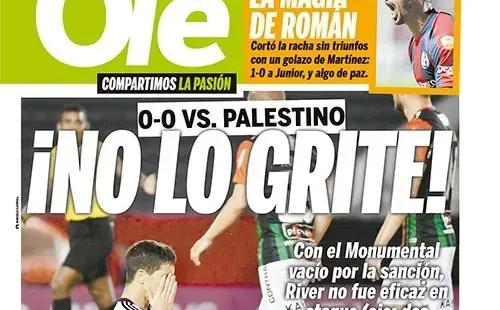 Medios como Olé hicieron énfasis en la defensa palestinista, la falta de gol del equipo Millonario y los penales que, a su juicio, no le señalaron en contra a los chilenos. Mira su portada de hoy: