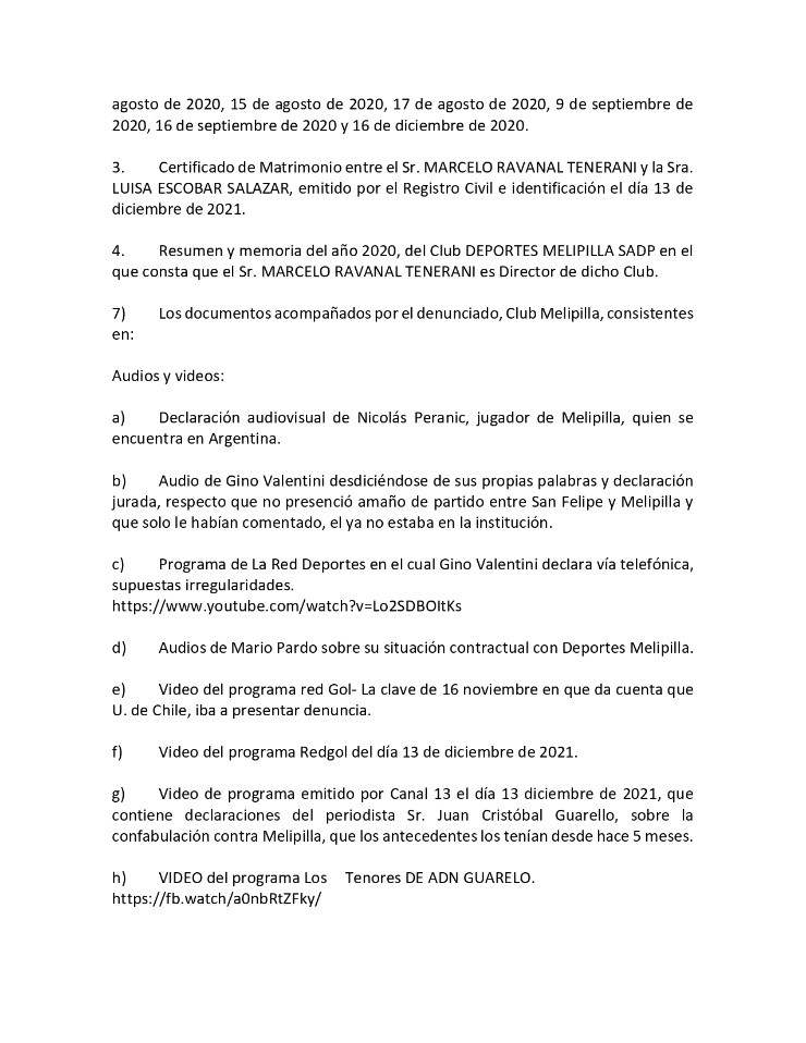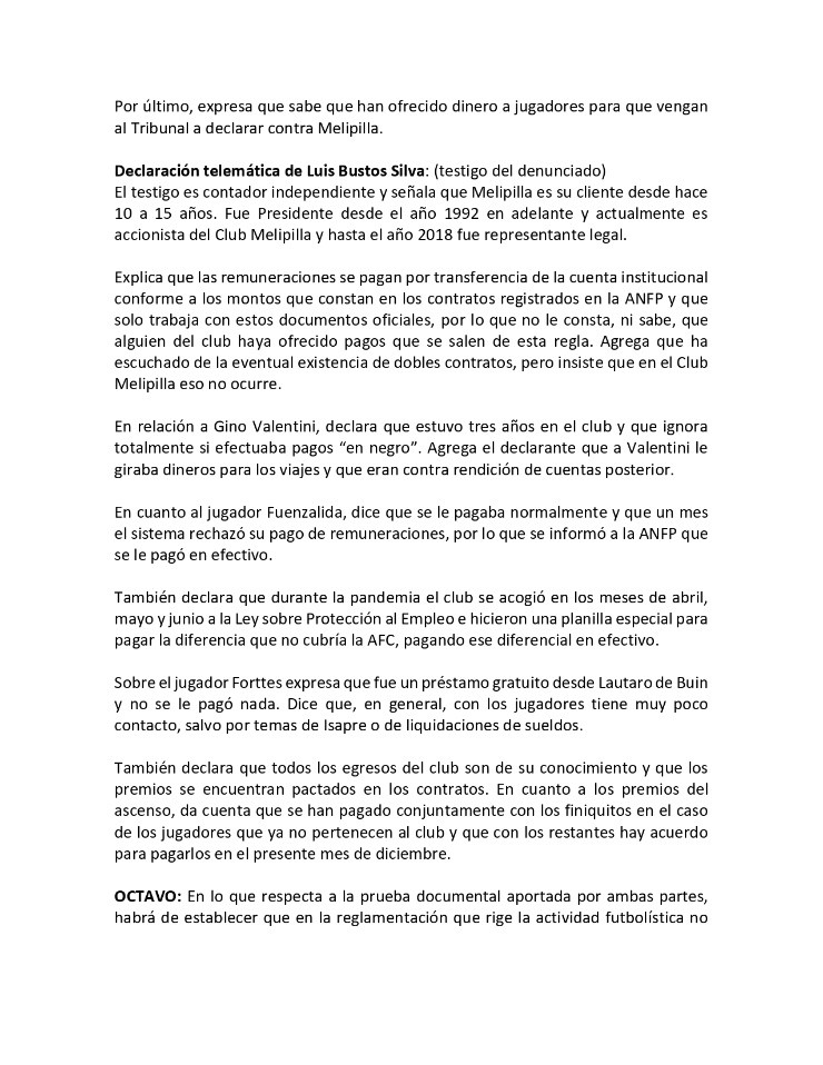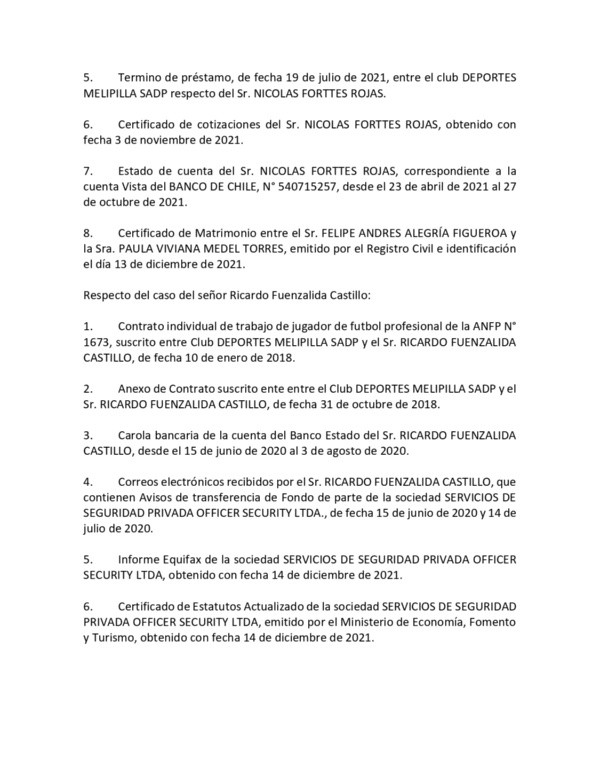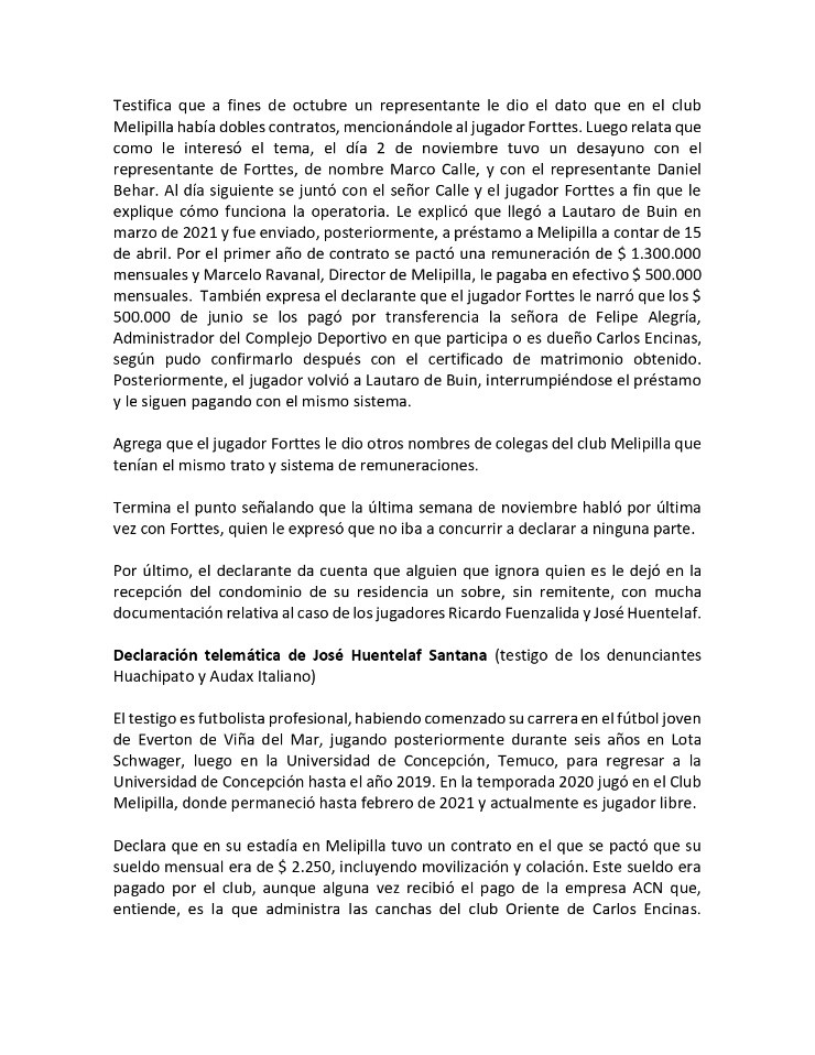 Cabe señalar que el delantero José Huentelaf entrega similares antecedentes, aunque acredita que los pagos se le hacían a través de relacionados con Melipilla, como un administrador de canchas o la cónyuge de uno de los dirigentes.