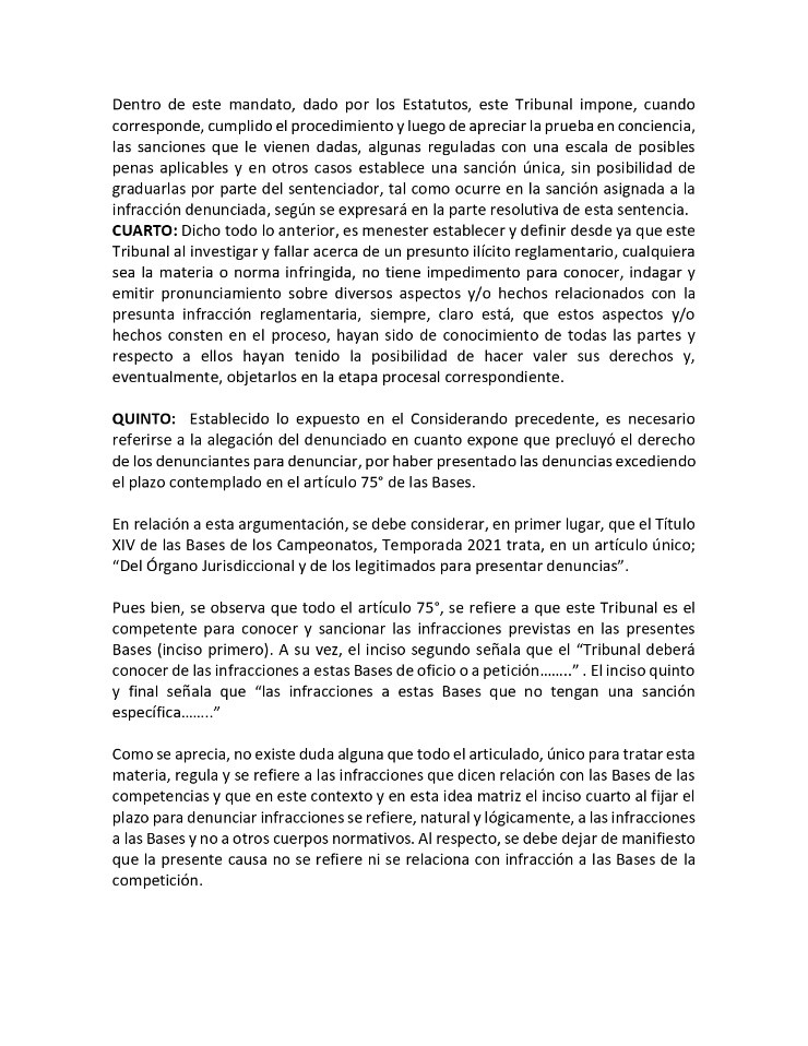 En el último repaso a la sentencia del Caso Melipilla, vale hacer hincapié en la manifestación del propio tribunal respecto a la situación que ha marcado el desenlace del Campeonato Nacional y mantiene en vilo la definición de los descensos.