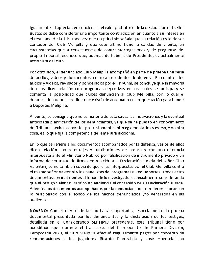 Por último, conviene recordar que las irregularidades que se le acreditaron a Melipilla datan, como máximo, de la temporada 2020 en que estuvo en Primera B, aunque el efecto de la sanción recae sobre el Campeonato Nacional 2021.