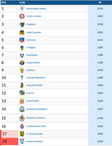 Revisa la tabla ponderada del fútbol chileno