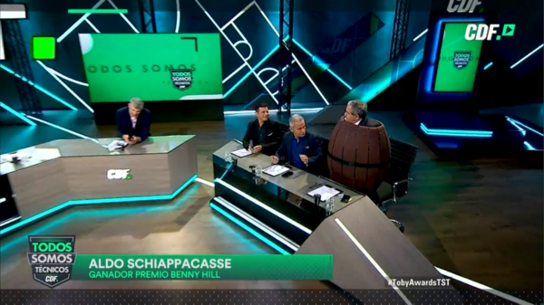 Premio Benny Hill al mejor chascarro: “el ganador es Aldo Schiappacasse y el barril del Chavo del 8”.