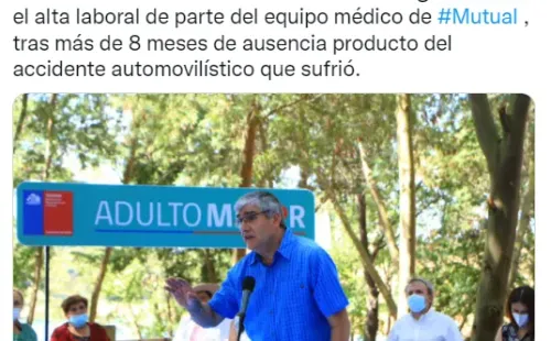“¡Ya es oficial! El Alcalde Carlos Chandía retoma sus funciones este martes 22 de marzo luego de recibir el alta laboral de parte del equipo médico de Mutual , tras más de 8 meses de ausencia producto del accidente automovilístico que sufrió”, escribió la cuenta oficial de la autoridad municipal.