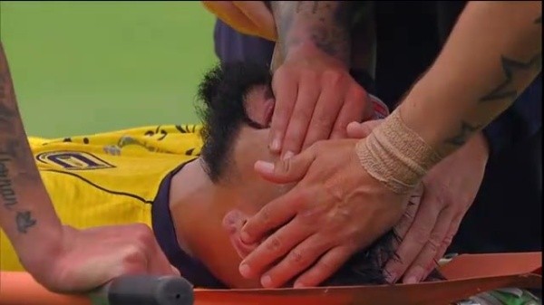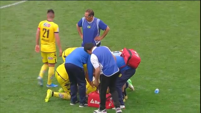 Finalmente debió salir en camilla aunque el saldo sería bastante peor:”Fractura de costilla 12 y fractura de apófisis transversa de L1 y L2, que afortunadamente no le provocó un neumotórax, que es lo más peligroso cuando se fractura una costilla, que puede perforar un pulmón”, según dijo a La Estrella de Concepción el gerente técnico auriazul, Mario Lucero.