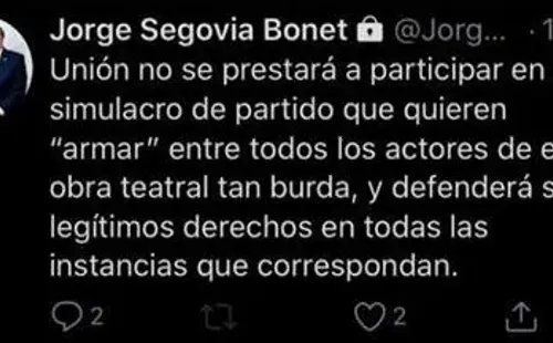 Sentenció que “Unión no se prestará a participar en ese simulacro de partido que quieren armar entre todos los actores de esta obra teatral tan burda, y defenderá sus legítimos derechos en todas las instancias que correspondan”.