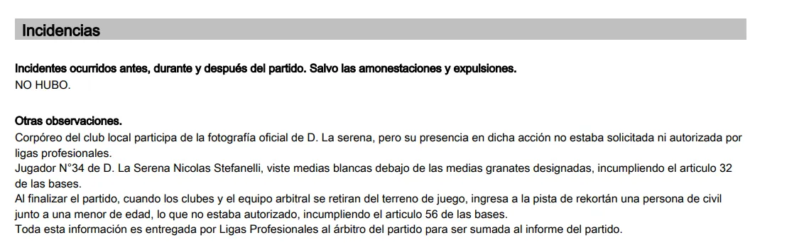 Esto, porque hubo una inusual denuncia en contra el cuadro local en el estadio La Portada, que dejó impactados a los hinchas por ser apuntado en el informe del árbitro Matías Assadi.