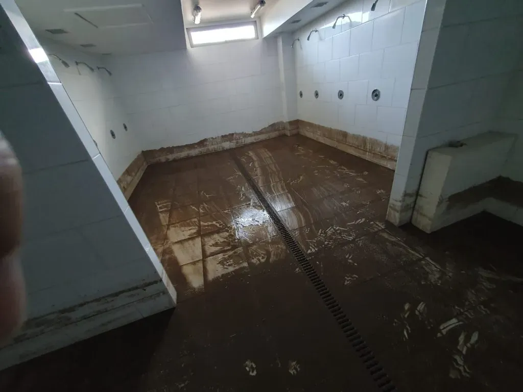 También en camarines se logró quitar buena parte del agua que había inundado las instalaciones. Se logra apreciar barro, pero los trabajos han logrado secar buena parte de lo que hasta hace unos días era solo agua.