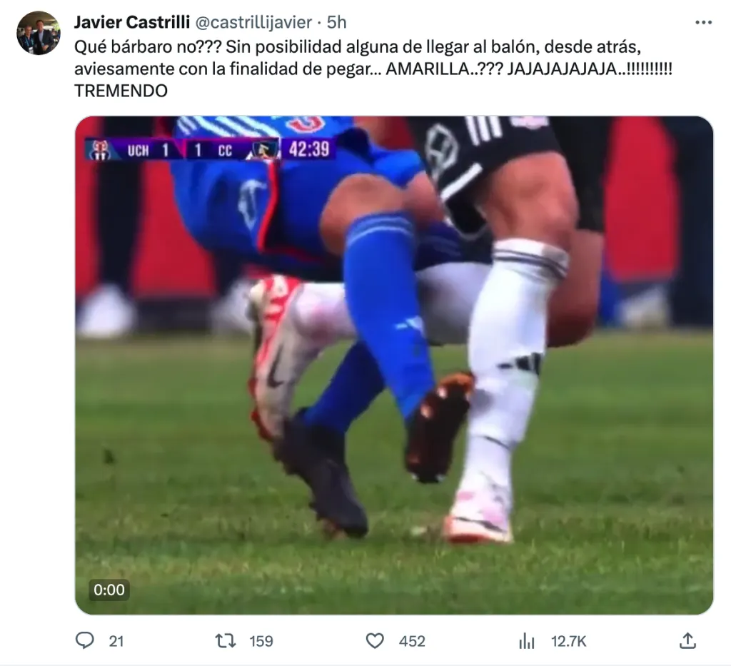 Además, el ex jefe de los Árbitros afirmó que Nery Domínguez merecía tarjeta roja por la falta sobre Carlos Palacios. “Qué bárbaro no??? Sin posibilidad alguna de llegar al balón, desde atrás, aviesamente con la finalidad de pegar. AMARILLA??? JAJAJAJAJAJA!!!!!!!!!! TREMENDO”.