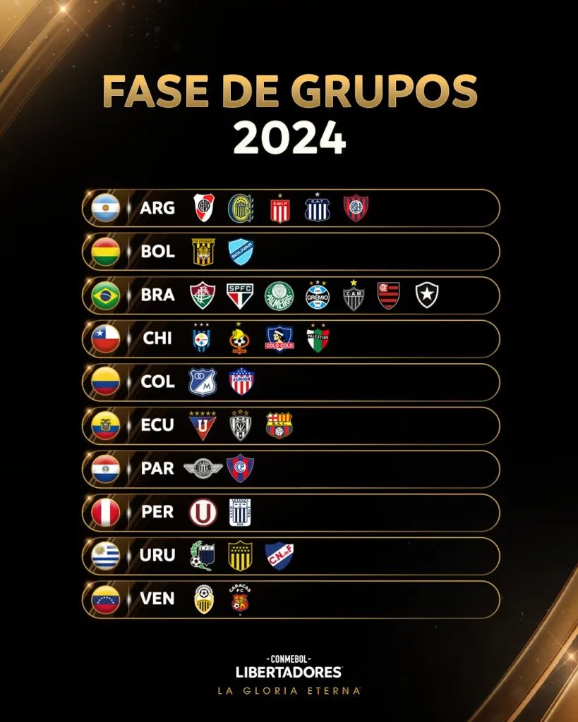 Ya están todos. Tras el cierre de la ronda preliminar ya se conocen los 32 equipos que participarán en la fase de grupos en la Copa Libertadores 2024, la cual tendrá por primera vez en su historia a cuatro equipos chilenos como participantes.