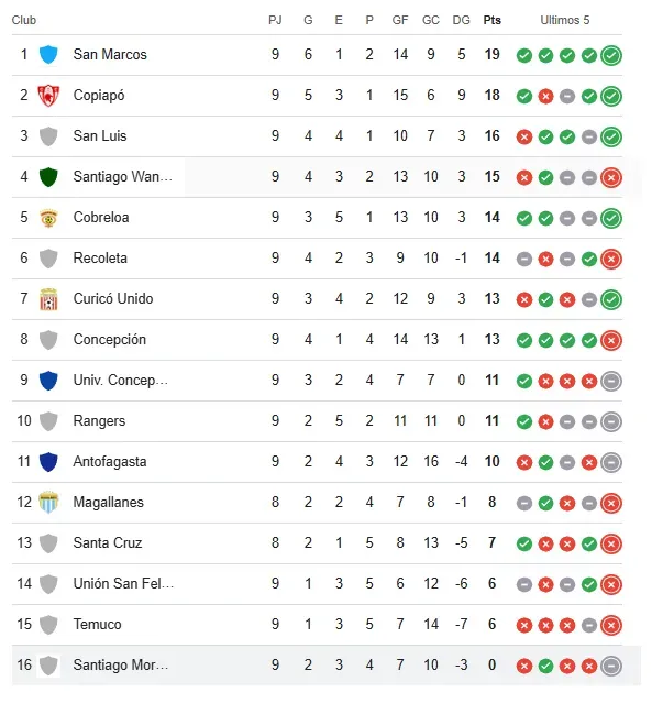 Hoy, el Chago debería sumar nueve puntos, fruto de dos victorias, tres empates y cuatro derrotas en los nueve partidos que lleva la Liga de Ascenso. Pero, al comenzar con nueve unidades menos por el castigo de la ANFP, totaliza cero.