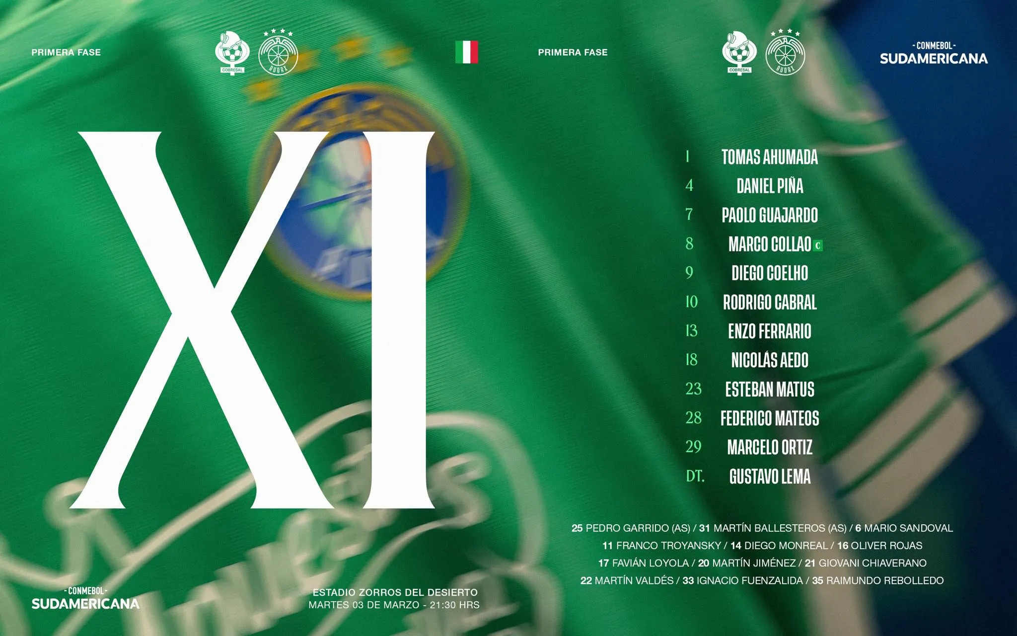 La competencia internacional no para y este martes dos clubes chilenos salen a buscar un lugar en la fase de grupos de Copa Sudamericana. Este martes 3 de marzo desde las 21:30 horas Cobresal recibe a Audax Italiano con la misión de meterse en la ronda regular del certamen.