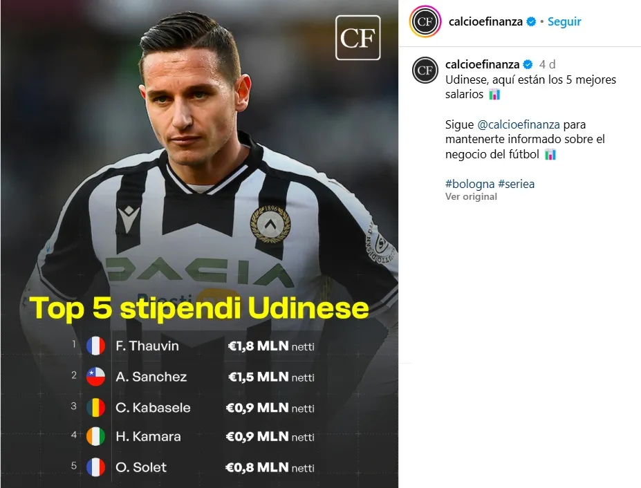 Por lo mismo, para hacerlo posible la directiva tuvo que desembolsar una importante suma para ficharlo, la cual fue revelada recientemente en un ranking con los jugadores mejor pagados del equipo.