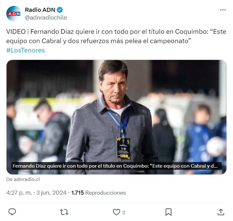 Así lo dejó en claro el DT de Coquimbo en conversación con Radio ADN, donde señaló que “a los entrenadores nos mueve el éxito deportivo y si terminamos la primera rueda con el rendimiento que tenemos, obvio que nos ilusionamos y deberíamos pelear por el título“.