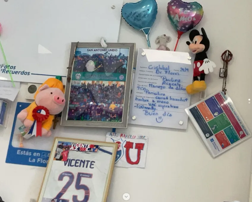 La segunda foto muestra los mensajes de apoyo que le llegaron a Campos durante estas semanas, donde destacan fotos de su paso por San Antonio Unido, más algunas cartas que le llegaron de parte de hinchas de la U, además de peluches.