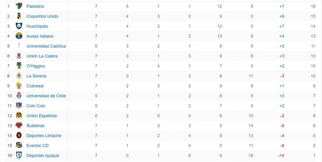 Esto porque con 7 puntos están a solamente dos unidades de la zona de descenso, que actualmente comparten Everton con Deportes Limache, que suman cinco unidades. Lejos eso sí de Iquique, que apenas ha sumado un punto.