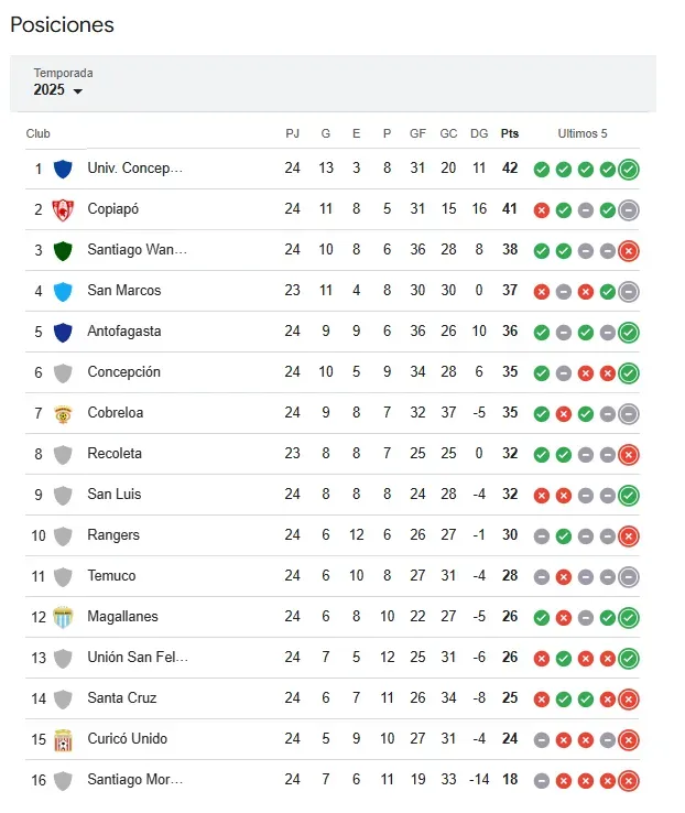 Luego de la victoria de Deportes Concepción por 4-0 ante Cobreloa, así queda la tabla de posiciones de la Primera B a la espera del último partido programado por la fecha 24.