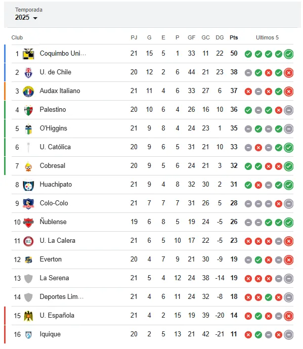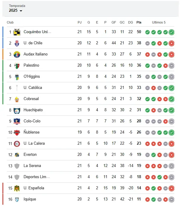 Un resultado que también lo mira de reojo Colo Colo, ya que tiene un nuevo invitado en la lucha por meterse en zona de Copa Sudamericana para el 2026, el único premio al que puede postular.