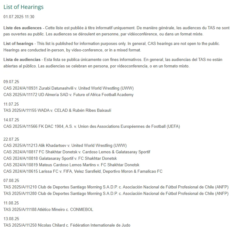 De hecho, a la hora de revisar las próximas audiencias del TAS, es efectivo. El próximo 7 de agosto será la fecha donde se conocerá la suerte de Santiago Morning, y del fútbol chileno, por los nueve puntos descontados al inicio de año.