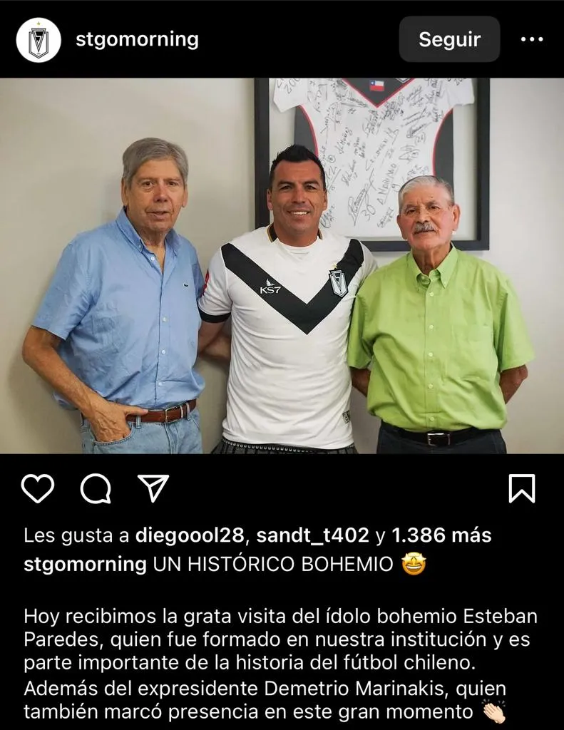 “Recibimos la grata visita del ídolo bohemio Esteban Paredes, quien fue formado en nuestra institución y es parte importante de la historia del fútbol chileno”, explicaron.