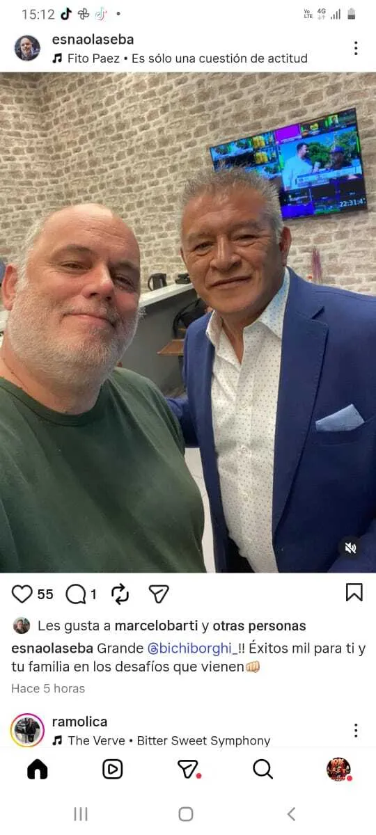 Senastián Esnaola, uno de los panelistas de programas como F90, subió una foto bastante decidora, en la que posó con el Bichi. En ella se puede leer: “Grande Claudio Borghi. Éxito para ti y tu familia en los desafíos que vienen”.