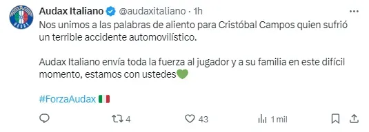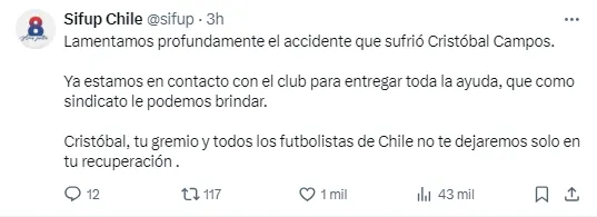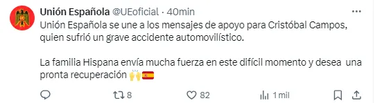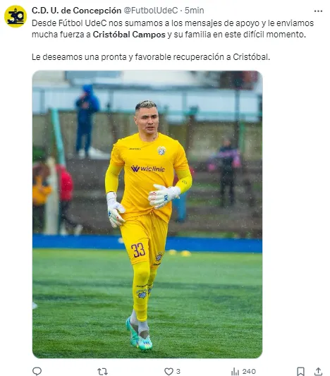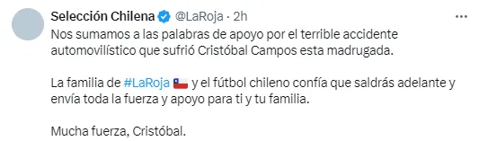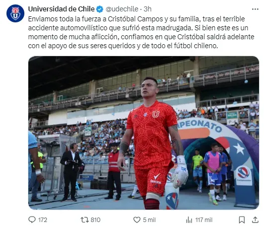 La UC también le dedicó un mensaje a Cristóbal Campos tras su accidente. | Foto: Captura.