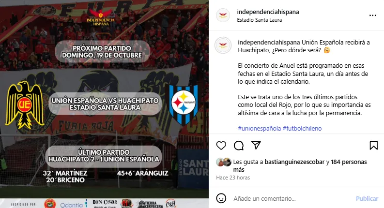 De acuerdo a Independencia Hispana, la realización de dicho concierto complica todo el panorama. “Unión Española recibirá a Huachipato, ¿Pero dónde será?”, dice el medio deportivo partidario de los de Independencia.
