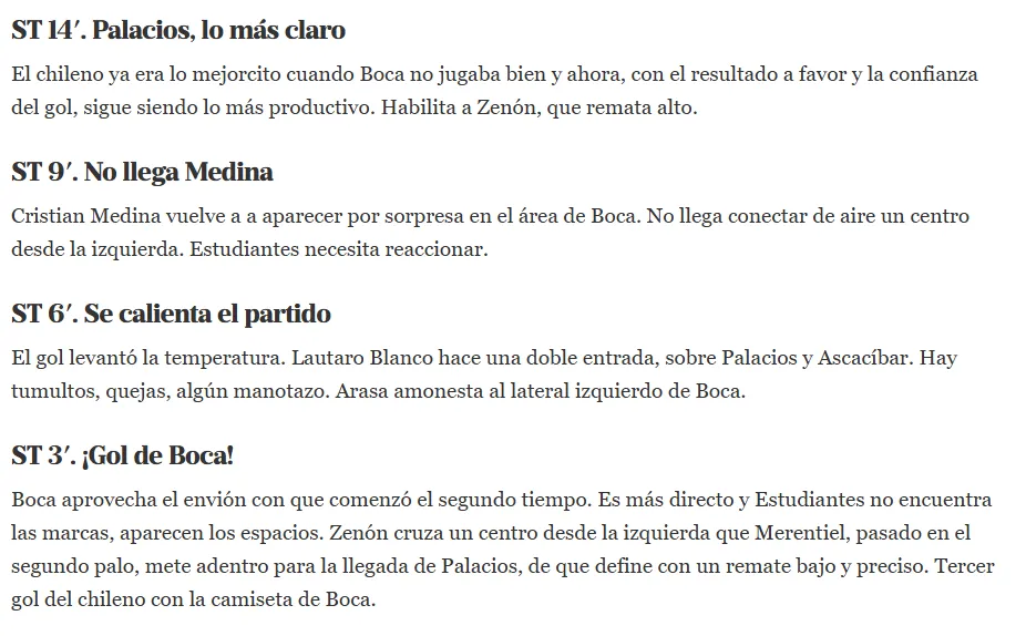 Finalmente, La Nación señaló que “el chileno era lo mejorcito cuando Boca no jugaba bien y ahora, con el resultado a favor y la confianza del gol, sigue siendo lo más productivo”. Además, en el momento del gol, describieron el tanto como una definición “con remate bajo y preciso”.